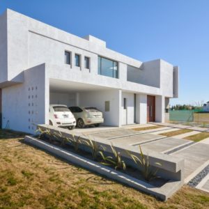 Un aspecto importante de la casa posee un sistema de recolección de agua de lluvia para riego, buscando aprovechar los recursos no renovables, a su vez la carpintería exterior utilizada es de aluminio con doble vidriado hermético para disminuir las perdidas térmicas tanto en verano como en invierno.